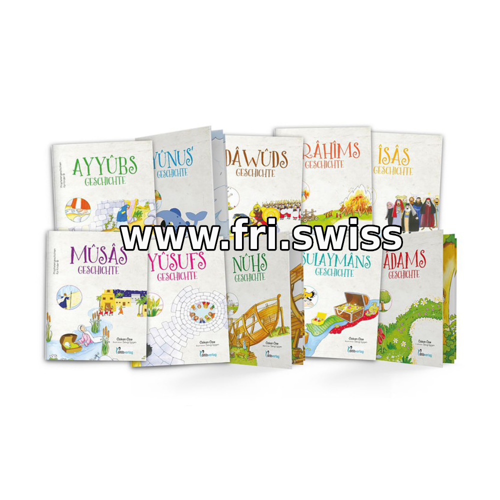 Spannende Prophetengeschichten aus dem Koran für Kinder erzählt und illustriert. Die Serie besteht aus 10 Heften á 24 Seiten. Diese nicht nur für muslimische Kinder interessante Reihe führt die ereignisreichen Höhepunkte aus den Lebensgeschichten der Propheten entsprechend der koranischen Erzählungen auf. Durch die Lektüre dieser Reihe empfinden die Kinder die Strapazen der Propheten auf dem Weg der Verkündigung des Glaubens nach. Allah erzählte diese Geschichten im Koran, damit der Prophet Muhammed (s) bei der Vermittlung der Offenbarung der Verse die Hoffnung nicht verliert und sich nicht allein fühlt. Für ihn spendeten sie Trost und Zuversicht im Laufe der Jahre, wenn er nicht mehr weiter wusste und göttlichen Beistand brauchte. Für Kinder übernehmen die Propheten auf dem Wege des Erwachsenwerdens die Aufgabe der Vorbilder, die ein Leben in Frieden mit sich selbst und Gott darbieten.
