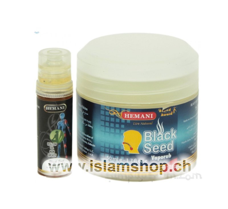 Fara e zezë me avull. Përbërësit aktivë: Nigella Sativa, Parrafinum Solidium, Mentol dhe Thymol